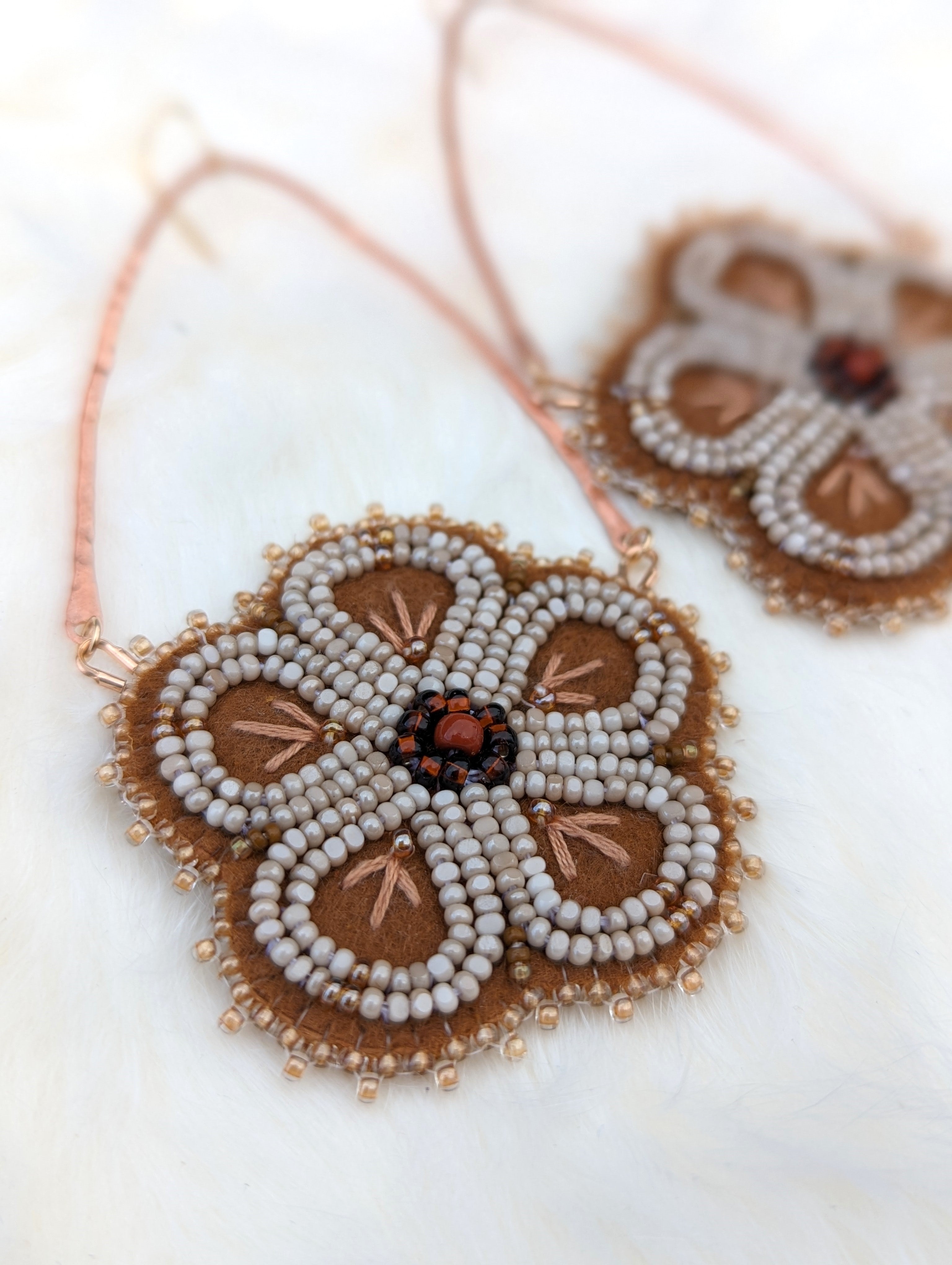 I create jewelry through my collection Daughter of Seasons and teach workshops for Indigenous and non-Indigenous community members who want to build skills and confidence through making.