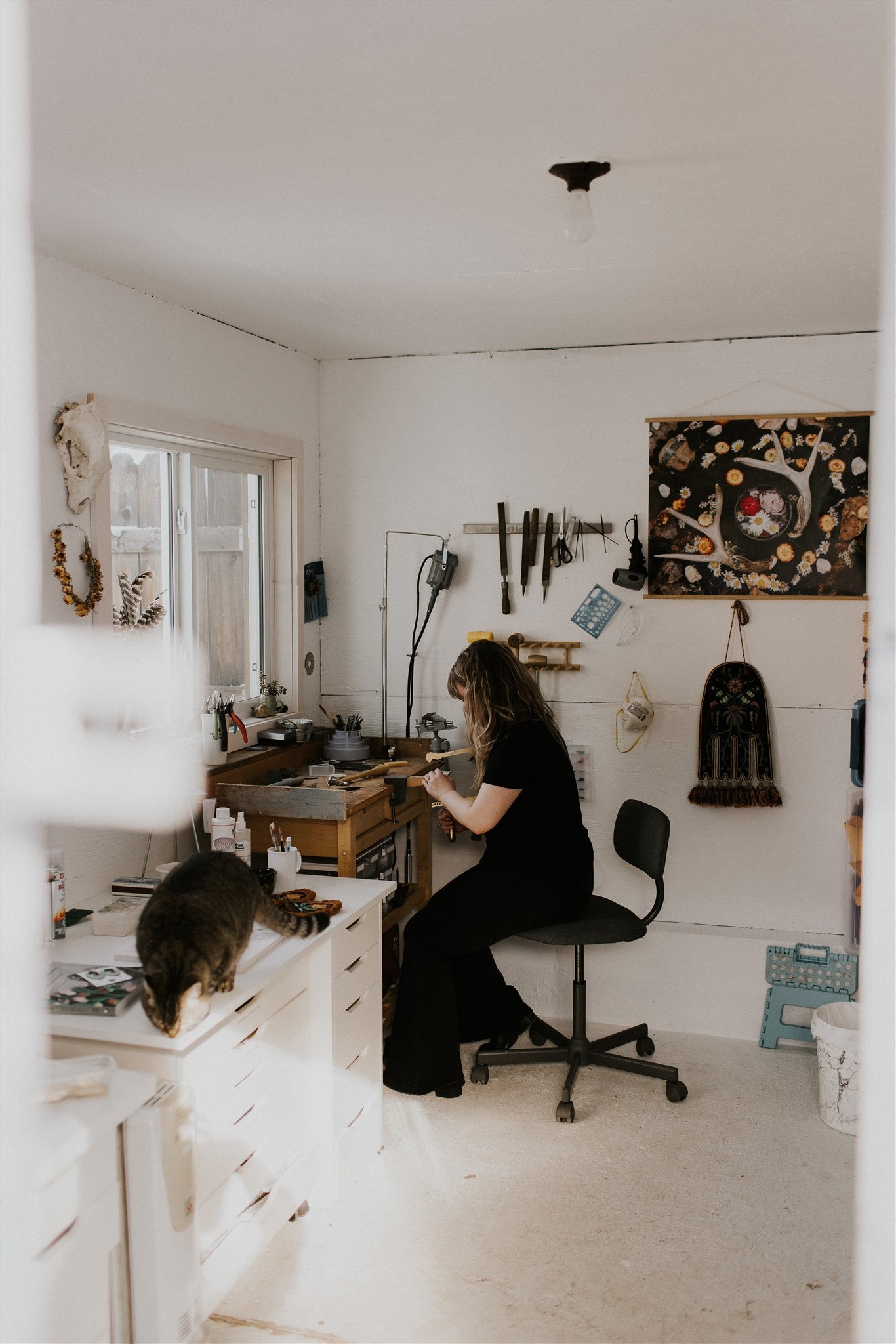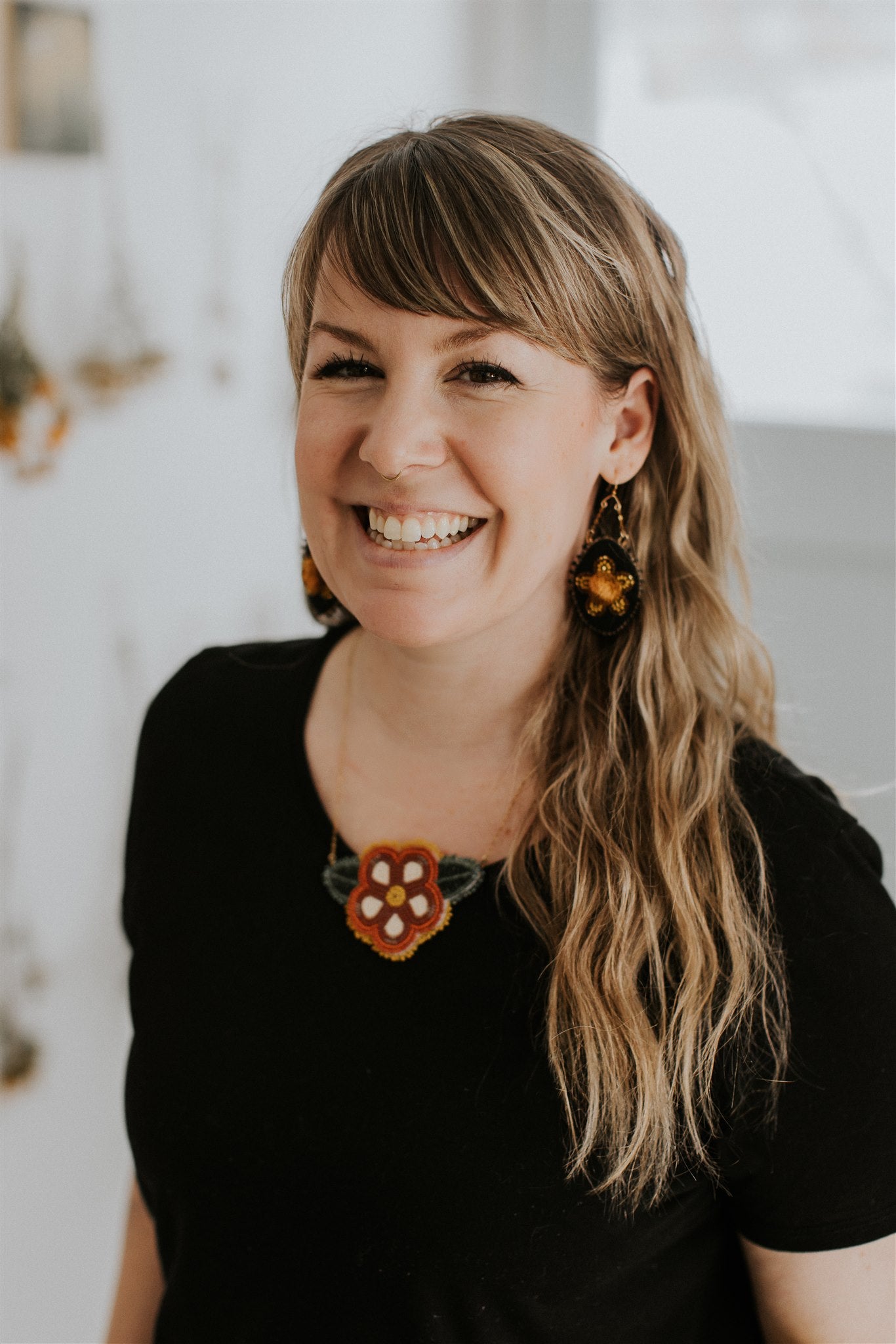 Tegan is a mixed media artist of Métis and settler descent. Her artwork includes beading, metalsmithing, painting and material arts. She lives in Kimberley, BC on traditional Ktunaxa Territory. She received her BFA from Emily Carr University and her BEd from Simon Fraser University on traditional Musqueam, Squamish and Tsleil-Waututh territory before returning to the Kootenays.