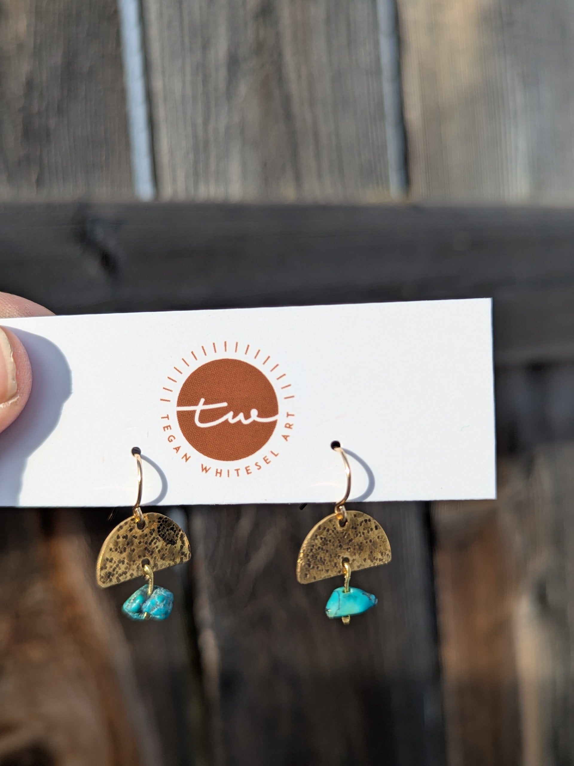 Hammered Brass and Turquoise Earrings
